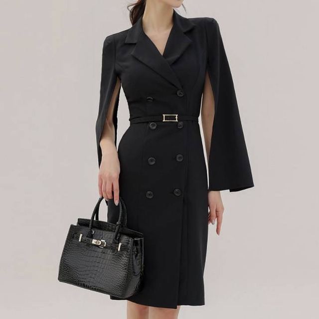 ケープスリーブ ジャケットワンピース ベルト付き ワンピース レディース 長袖 襟付き タイト スーツ風 上品 きれいめ 韓国風 大人エレガント 通勤 オフィス OL デート 二次会 結婚式 春 夏 秋 冬 お呼ばれ ブラック ベージュ おしゃれ 高見え 20代 30代 40代 フォーマル 体型カバー 人気 トレンド C-OSS0136