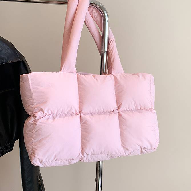 キルティングトートバッグ ダウン風バッグ ボリュームショルダーバッグ レディース バッグ カジュアル 軽量 ブラック グレー ブルー パープル ベージュ キャメル ピンク ホワイト おしゃれ ふわふわ素材 秋冬 春夏 人気 通勤 通学 マザーズバッグ K-B0183