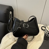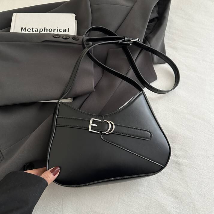 洗練されたフォルムにベルトモチーフがアクセントの、トレンド感あふれるショルダーバッグ。コンパクトながらもマチ幅がしっかりあるので、スマホや財布、小物などデイリー必需品がしっかり収まります。軽量設計で持ち歩きやすく、長時間のお出かけや旅行にもぴったりです。