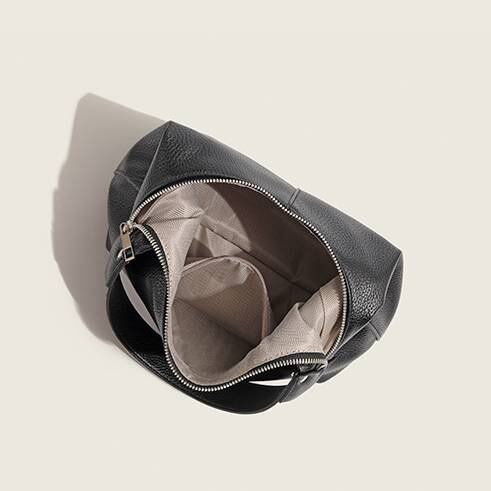 丸みを帯びたシルエットと、しっとりとしたフェイクレザーの質感が魅力のワンショルダーバッグ。高級感のあるデザインでありながら、普段使いにちょうど良いサイズ感と軽さで、デイリーコーデに自然に溶け込みます。ファスナー開閉で防犯面も安心、内ポケット付きで機能性も兼ね備えています。