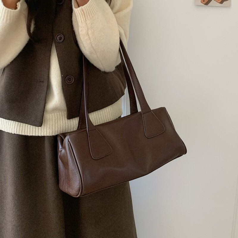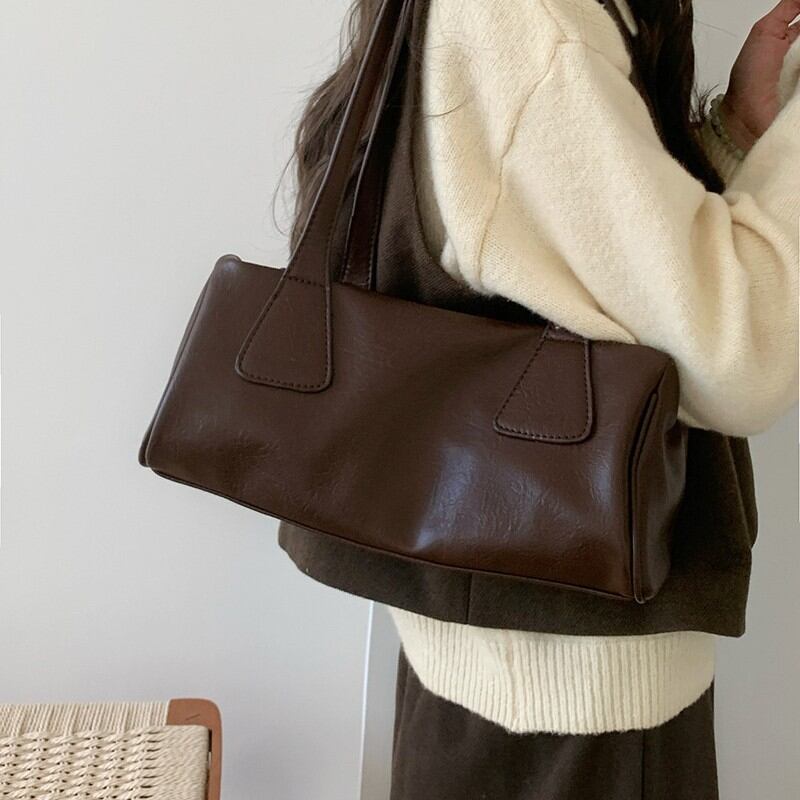 ショルダーバッグ ワンショルダー フェイクレザー バッグ レディース 韓国 シンプル 大人可愛い ブラック ダークブラウン カジュアル お出かけ 2色展開 K-B0211