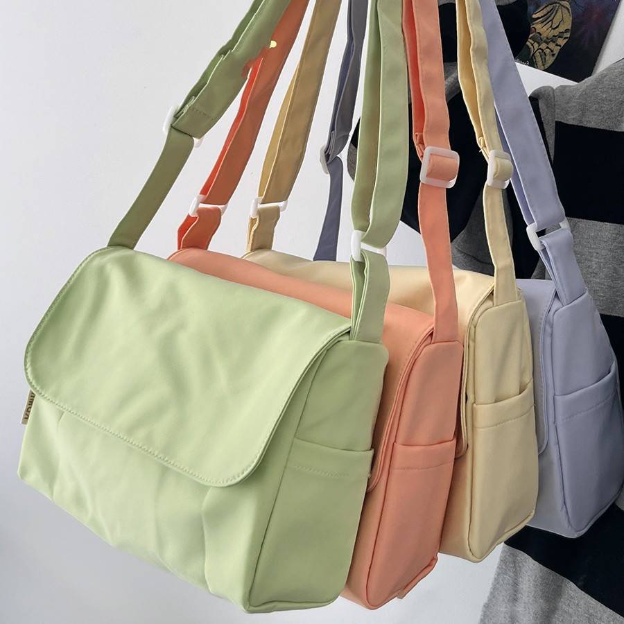 ショルダーバッグ メッセンジャーバッグ 韓国バッグ レディース 斜めがけ 軽量 シンプル 大容量 可愛い ブラック ライトブルー ライトイエロー ベージュ オレンジ レッド ピンク K-B0208