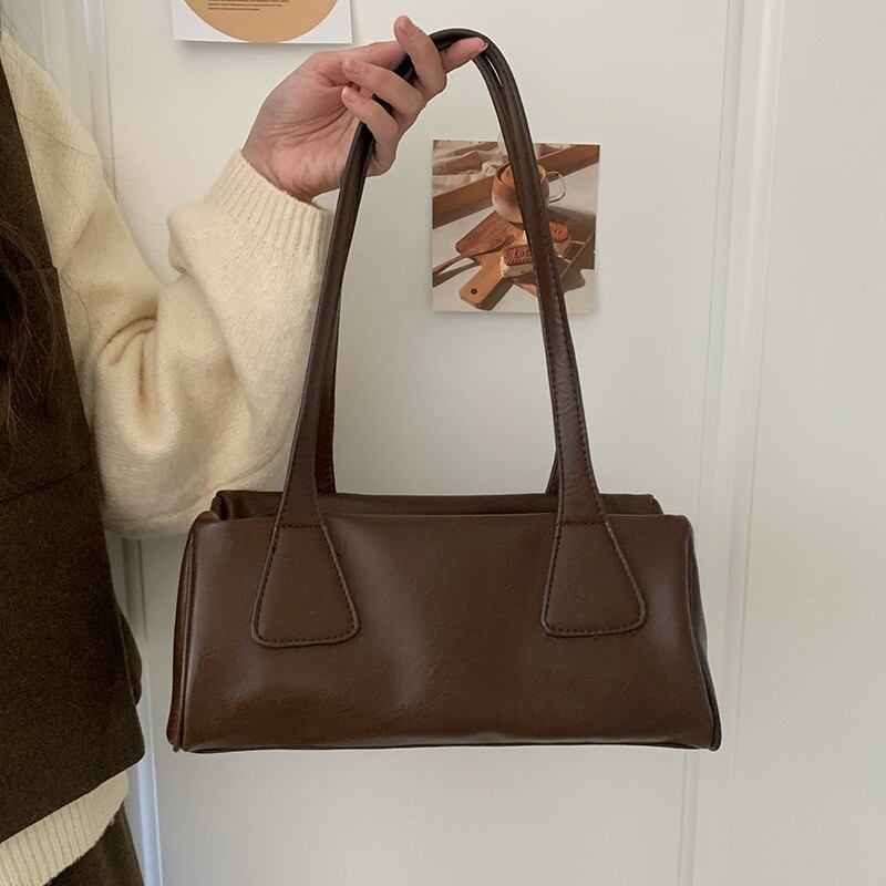 ショルダーバッグ ワンショルダー フェイクレザー バッグ レディース 韓国 シンプル 大人可愛い ブラック ダークブラウン カジュアル お出かけ 2色展開 K-B0211