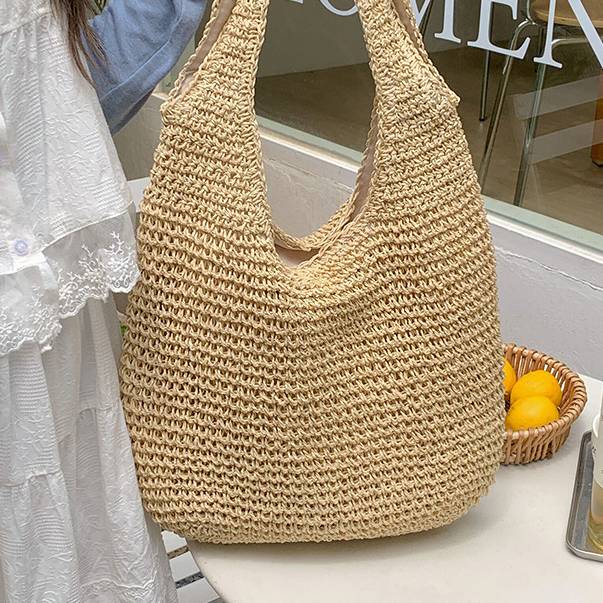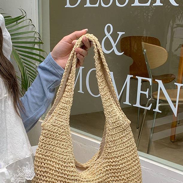 ラフィア風バッグ 編みバッグ かごバッグ レディース 肩掛け 大容量 ナチュラル素材 韓国ファッション 春夏 お出かけ デート コーデ おしゃれ 人気 2色展開 K-B0225