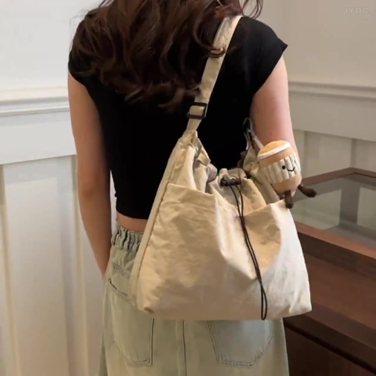 巾着 ショルダーバッグ キャンバス 肩掛けバッグ レディース バッグ 大容量 軽量 ナチュラル カジュアル 韓国風バッグ 春夏 秋冬 コーデ おしゃれ 人気 4色展開 K-B0227