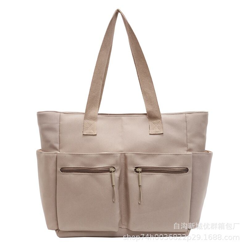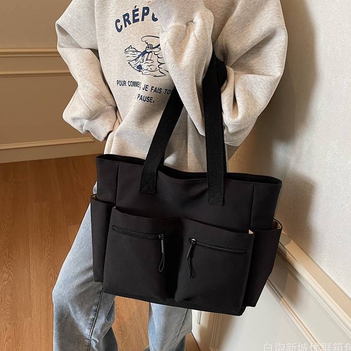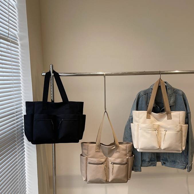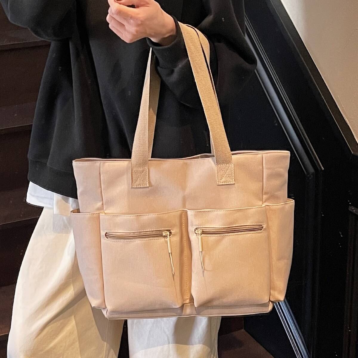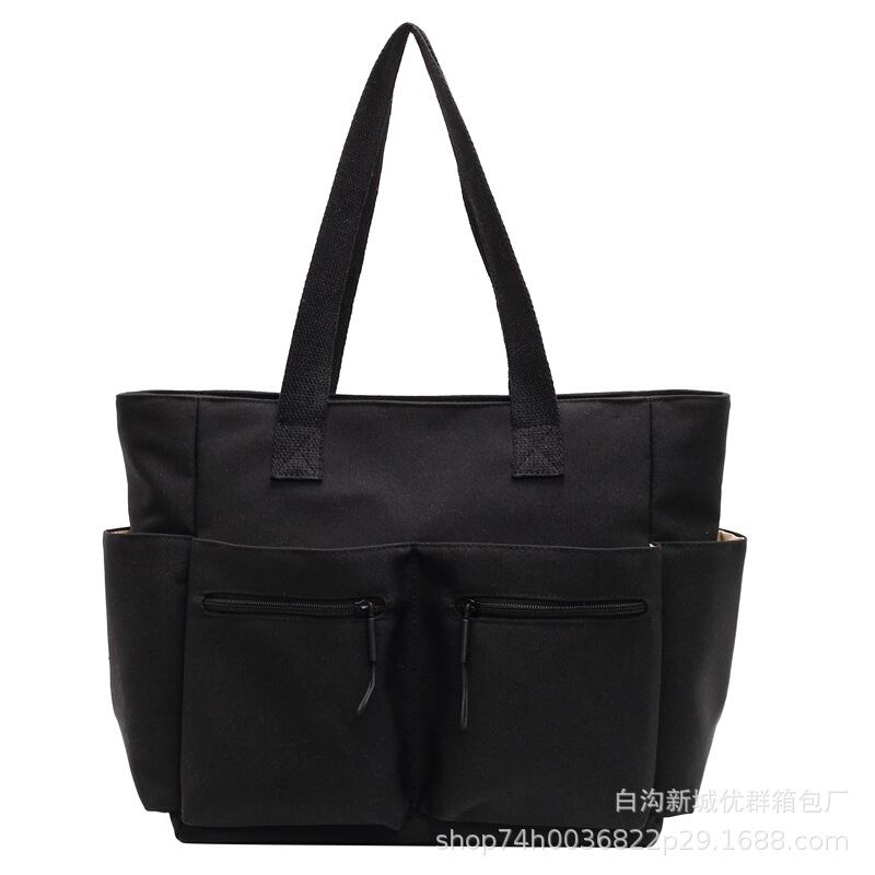 ブラック トートバッグ キャンバス 大容量 ポケット付き カジュアルバッグ 韓国風バッグ マザーズバッグ 学生バッグ 通学 通勤 人気 3色展開 K-B0222