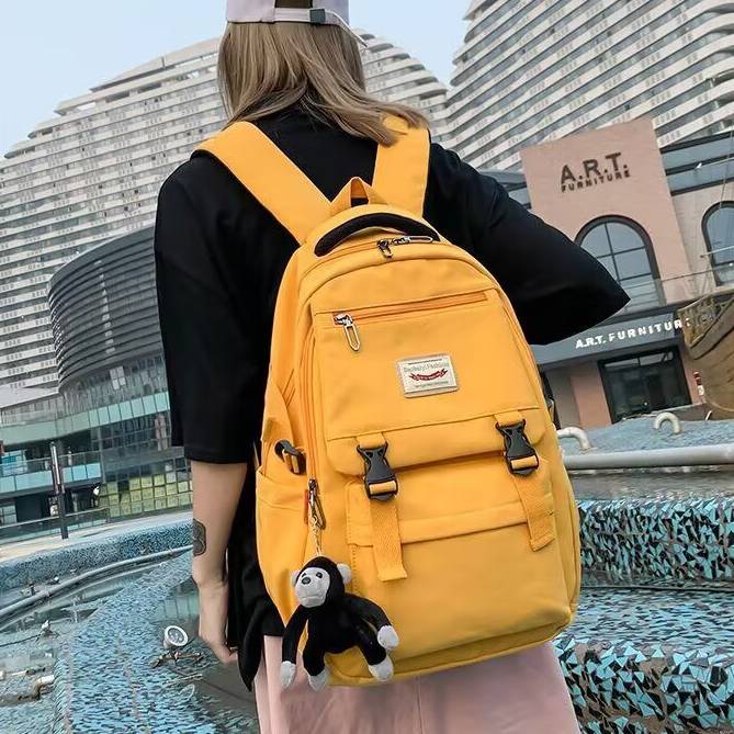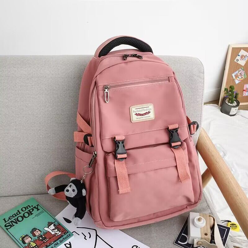 シンプルながらも可愛いくまのチャーム付きで、韓国風ファッションとの相性も抜群!6色展開で、お気に入りのカラーがきっと見つかります。中高生の通学バッグとしてはもちろん、週末のレジャーや旅行バッグとしても使いやすい万能デザイン。おしゃれで実用性も抜群なリュックをぜひお試しください。