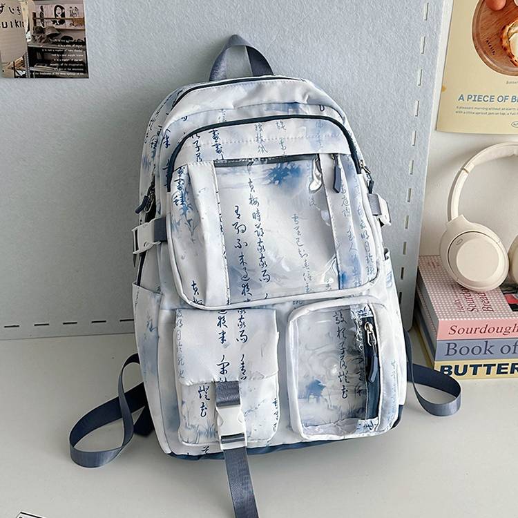 書道柄 リュックサック バックパック 韓国風 学生 通学 軽量 多収納 大容量 レディース メンズ ユニセックス 高校生 A4対応 K-B0217