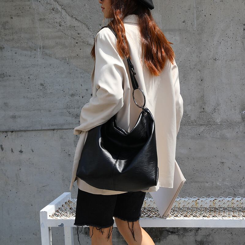 レザートートバッグ ワンショルダーバッグ ブラックバッグ レディースバッグ 大容量 シンプル 韓国風 きれいめ 通勤バッグ 肩掛け 軽量 オフィスカジュアル デイリーコーデ ブラック K-B0229