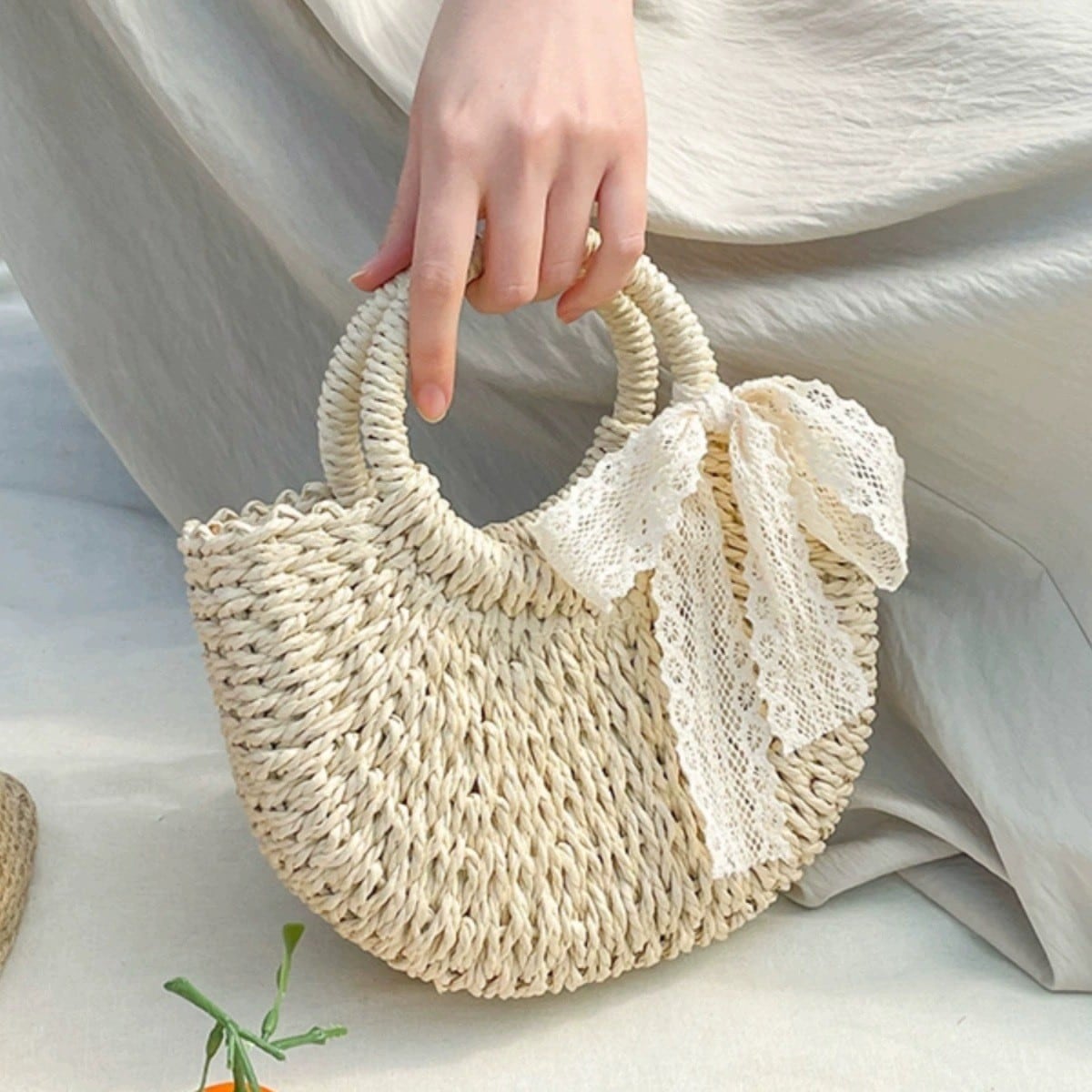 ハンドバッグとしてもショルダーバッグとしても使える2WAY仕様で、シーンやコーデに合わせて持ち方を変えられます。ピクニックやカフェ巡り、リゾート旅行など春夏のレジャーシーンにぴったり。レースリボンがアクセントになり、ガーリー派さんにもおすすめのアイテムです。