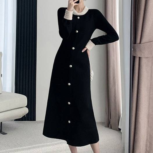 ワンピース ロングワンピース Aラインワンピース レディース 春夏 秋冬 春 夏 秋 冬 黒 ロング パールボタン 長袖 フレアワンピース ロングワンピ ワンピドレス パールビジュ OL エレガント フォーマル ブラック 大きいサイズ きれいめ ドレスワンピース お呼ばれ 韓国 ファッション オフィスカジュアル 韓国風 キャバドレス ナイトドレス ナイトワンピ カジュアル 10代 20代 30代 40代 C-OSS0125