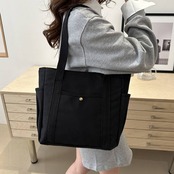 毎日のお出かけや通勤・通学にぴったりの大容量キャンバストートバッグ。シンプルなデザインだからどんなコーデにも合わせやすく、季節を問わず使える万能アイテムです。肩掛け・手持ちの両方に対応できる便利さも魅力です。