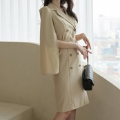 知的で洗練された印象を与える、ジャケットデザインのケープスリーブワンピース。