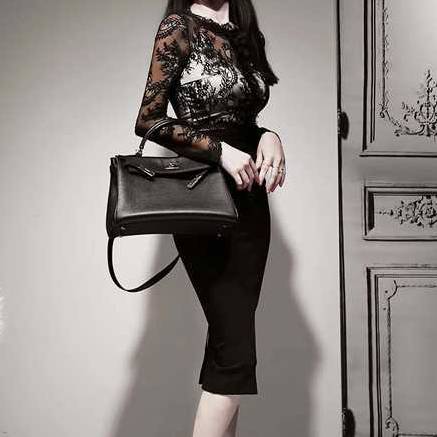 商品名:レーストップ タイトワンピース 長袖 ドレス