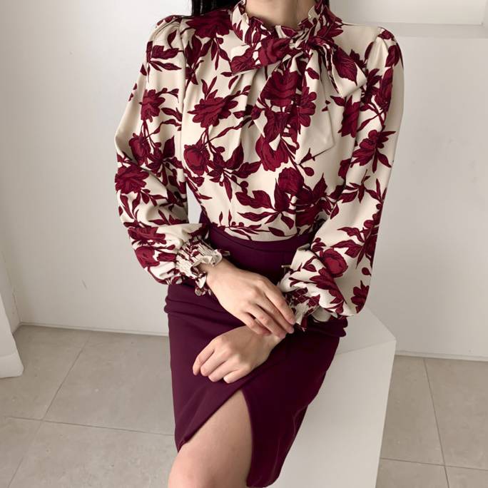 レッド セットアップ レディース 花柄ブラウス タイトスカート 上下セット ハイウエスト 通勤 OL オフィス お呼ばれ デート きれいめ 上品 フォーマル 韓国風 春 夏 秋 冬 20代 30代 40代 高見え エレガント 大人フェミニン トレンド 人気 着痩せ 美ライン セットコーデ スリットスカート リボンタイ C-OSS0147
