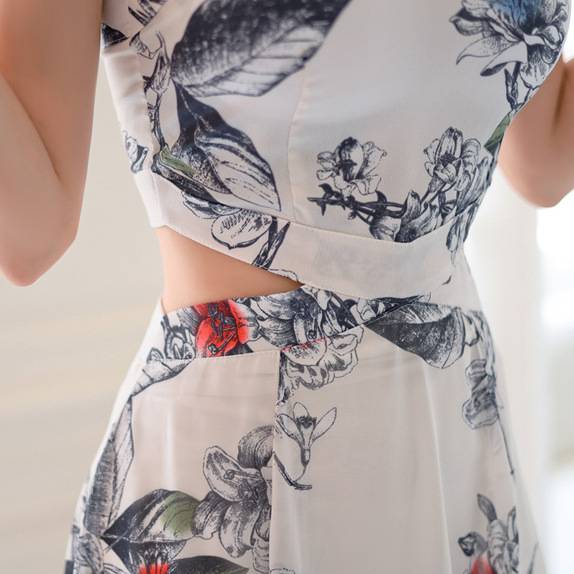 柔らかなシフォン生地が軽やかに揺れ、夏の旅行やビーチ、リゾートシーンにもぴったり。