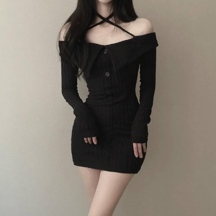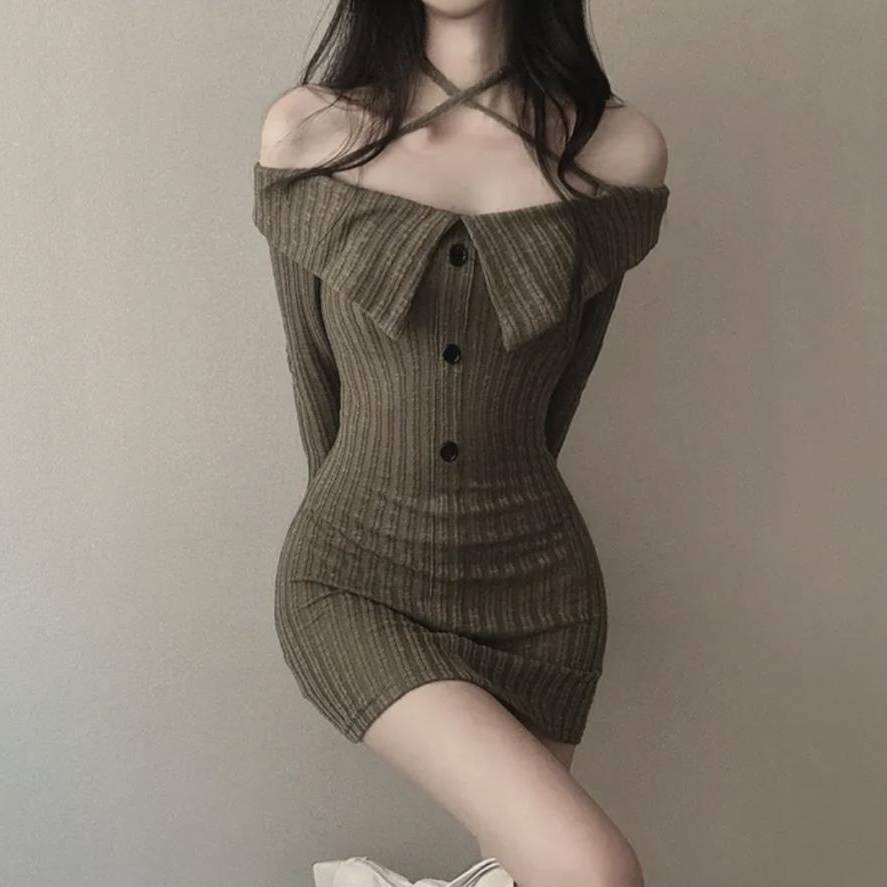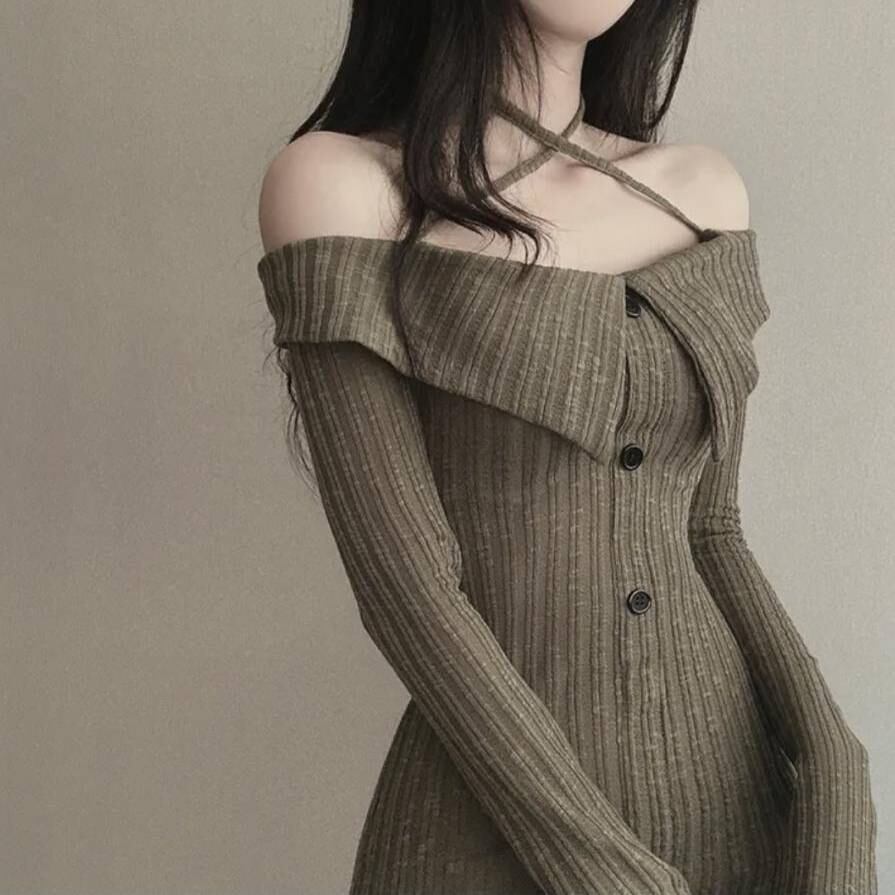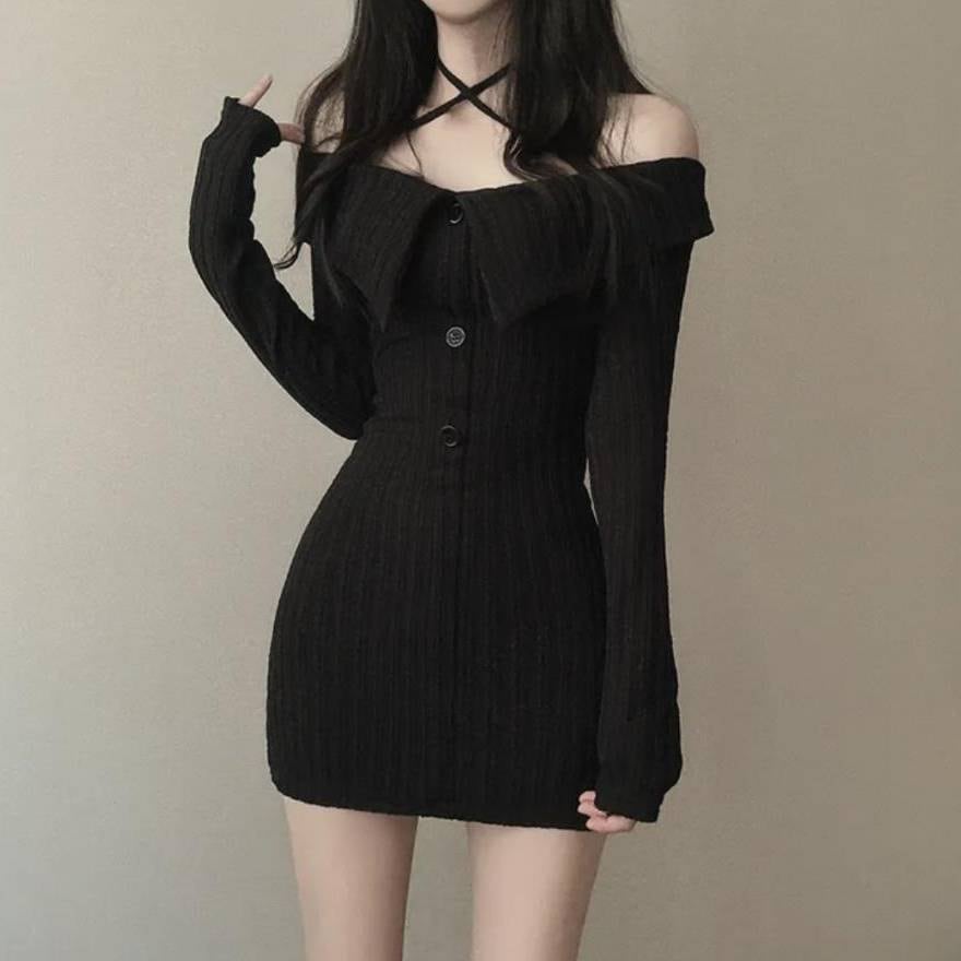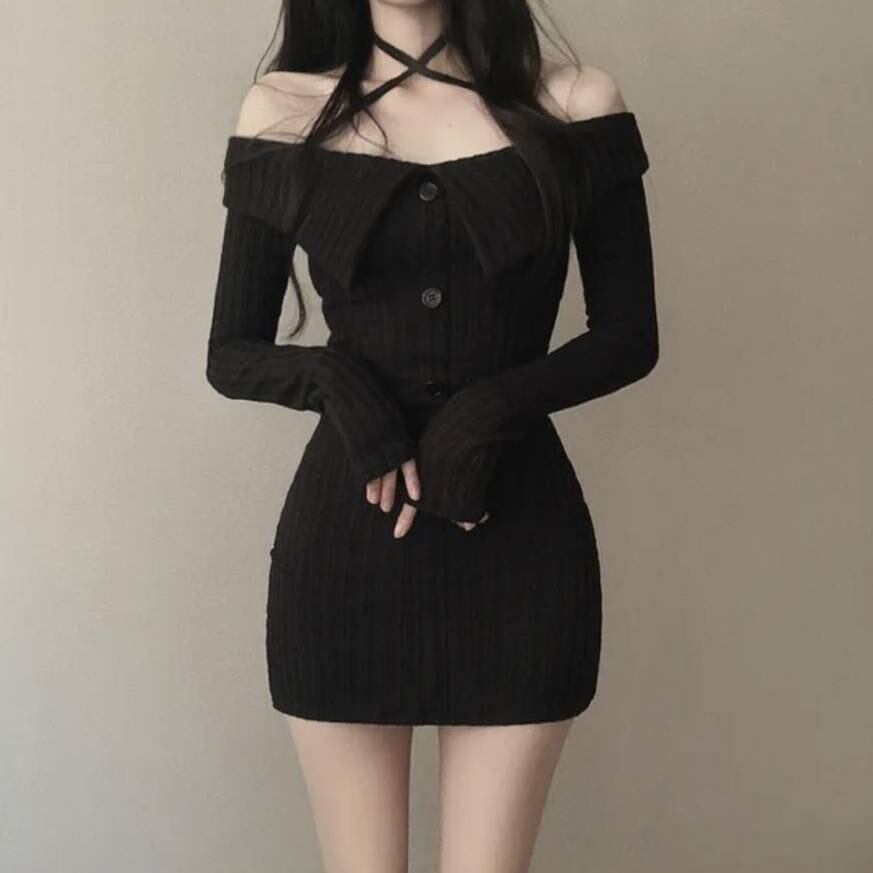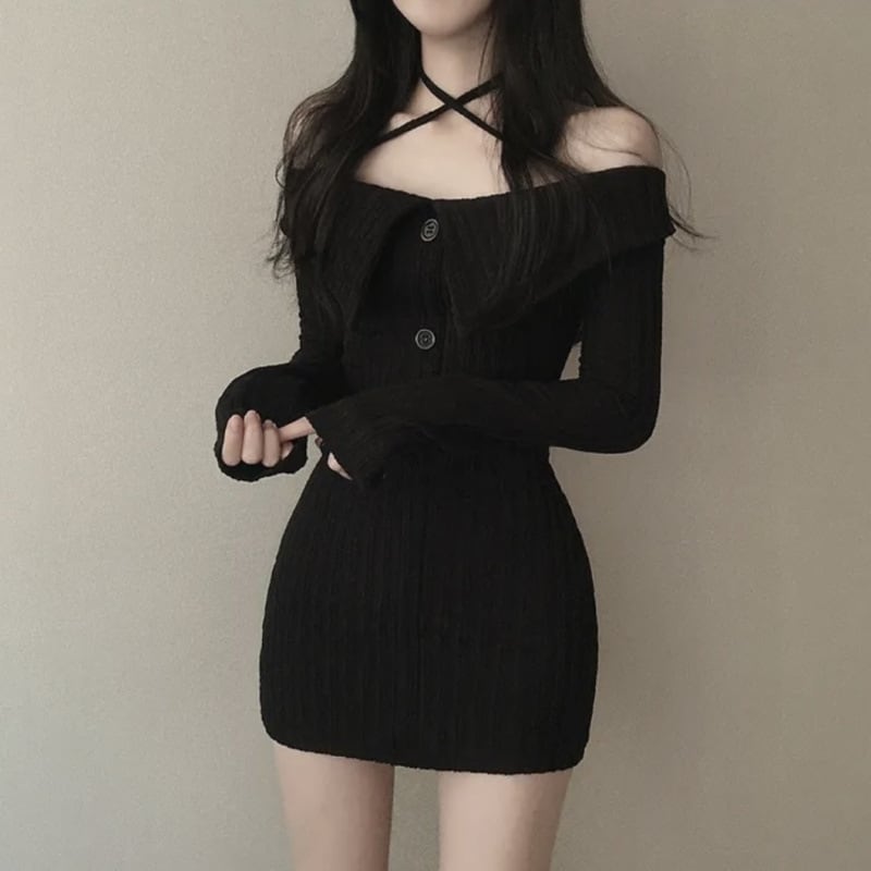 商品名:オフショルダー ニットワンピース タイトミニドレス
