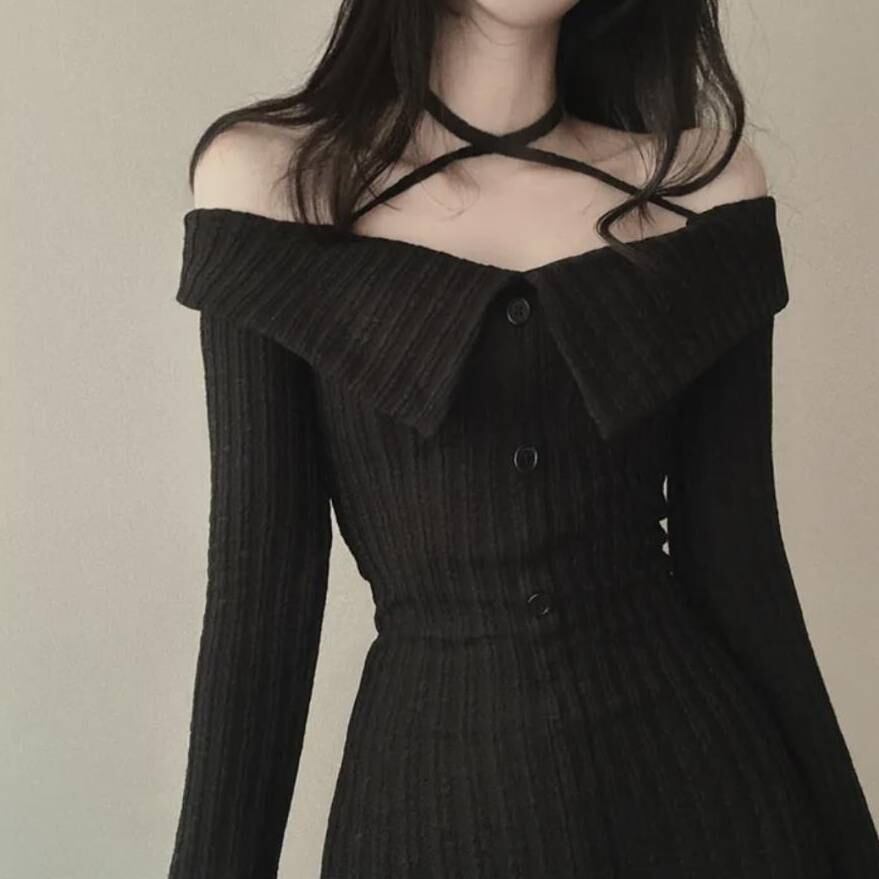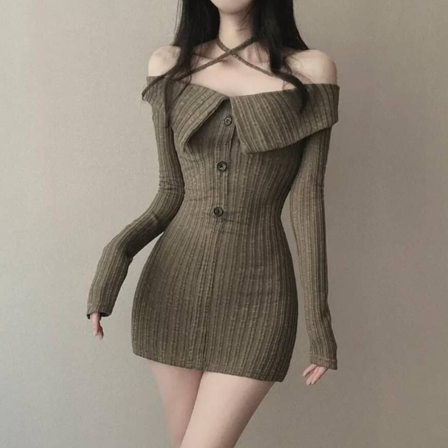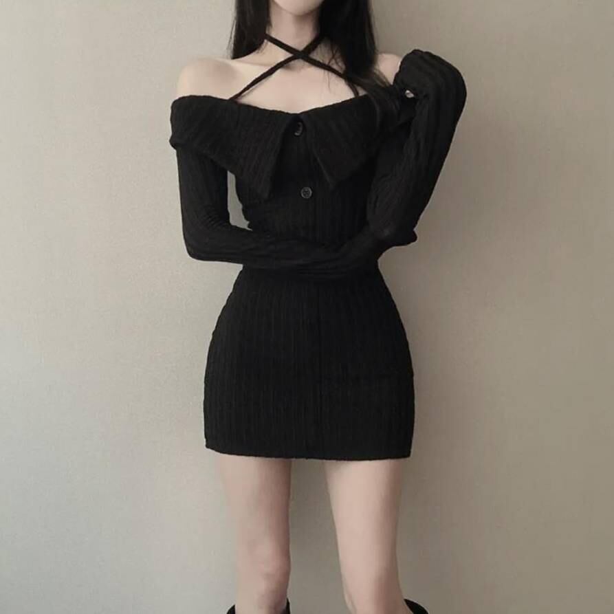 商品名:オフショルダー ニットワンピース タイトミニドレス