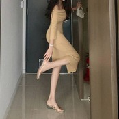 ワンピース ドレス タイトワンピ タイトドレス きれいめ ワンピース レディース 春 夏 秋 冬 七分袖 ミディ丈 ロング丈 お呼ばれ 通勤 大人 上品 セクシー 体型カバー パーティー 韓国風 量産型 地雷系 カジュアル デート おしゃれ ベージュ ベージュワンピ ベージュドレス 20代 30代 40代 大人女子 フェミニン エレガント C-OSS0218