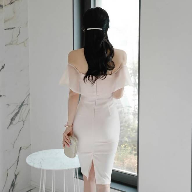 ドレス ワンピース タイトワンピ パーティードレス 韓国風 オフショルダー リボン フリル 大人可愛い きれいめ 上品 エレガント ワンピ タイト セクシー お呼ばれ 結婚式 二次会 食事会 デート 春 夏 秋 冬 ピンク レディース 20代 30代 40代 大人女子 モテワンピ 美シルエット C-OSS0219
