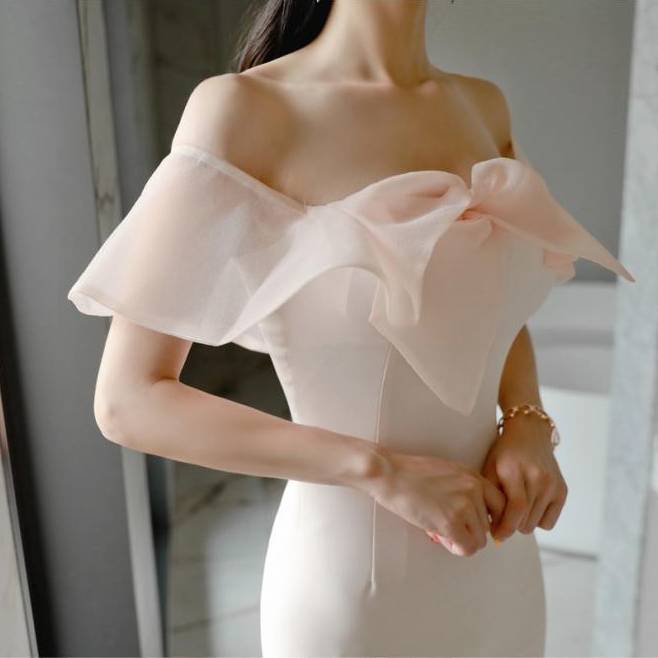 商品名:大人可愛さを纏うオフショルダー×リボンデザインドレス