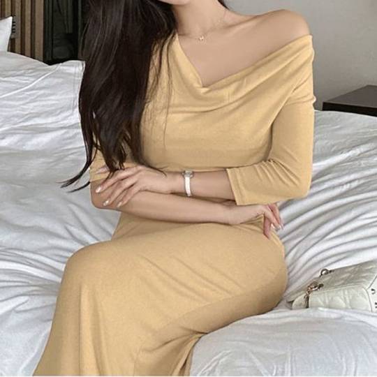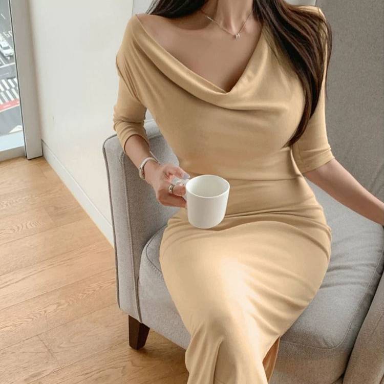 ワンピース ドレス タイトワンピ タイトドレス きれいめ ワンピース レディース 春 夏 秋 冬 七分袖 ミディ丈 ロング丈 お呼ばれ 通勤 大人 上品 セクシー 体型カバー パーティー 韓国風 量産型 地雷系 カジュアル デート おしゃれ ベージュ ベージュワンピ ベージュドレス 20代 30代 40代 大人女子 フェミニン エレガント C-OSS0218