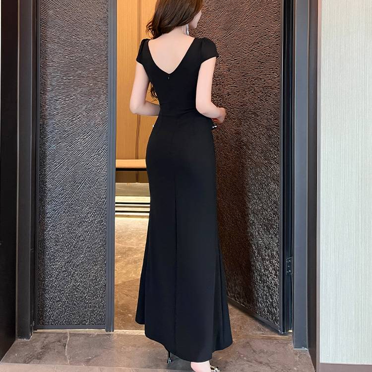 ブラック レッド ワンピース レディース ロングワンピース スリットドレス マーメイドライン パールベルト付き タイト エレガント セクシー フォーマル 上品 結婚式 二次会 パーティー お呼ばれ デート 高級感 大人きれい 美脚ライン ストレッチ 韓国ファッション 人気 春 夏 秋 冬 C-OSS0210