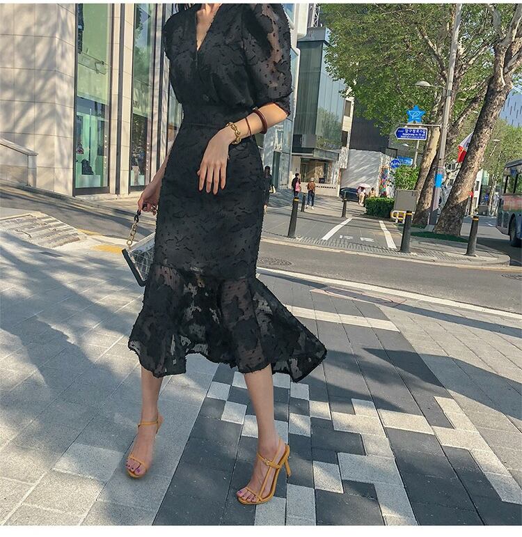 ワンピース レディース 春夏 秋冬 春 夏 秋 冬 黒 ミディアム丈ワンピース 5分袖 半袖 ドレス マーメイド レース ワンピースドレス Vネック ひざ丈 ひざ下 総レース パフスリーブ ドレスワンピース ミモレワンピース 半袖ワンピース シースルー お呼ばれ ロングワンピース 半袖 10代 20代 30代 40代 C-OSS0020