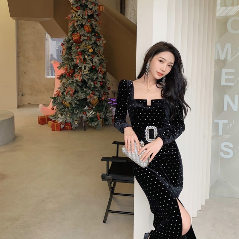 大胆に開いたスクエアネックで肌見せも叶うデザイン。