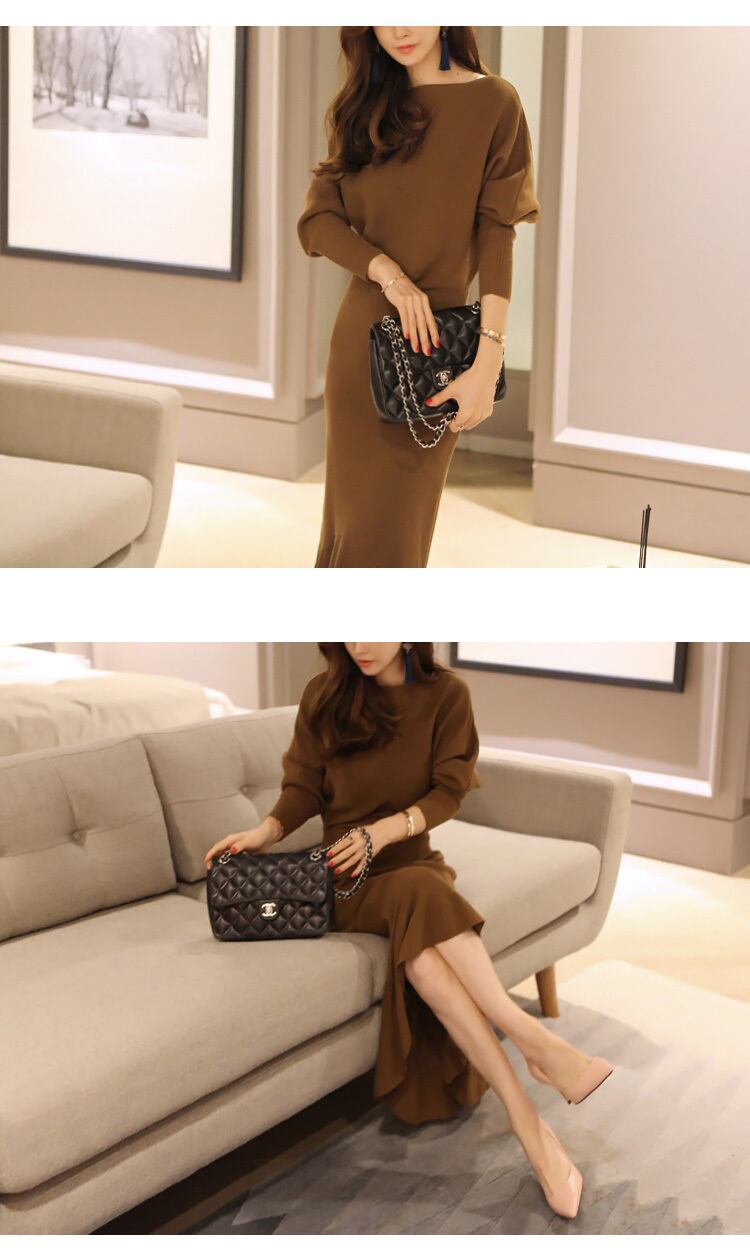 長袖マーメイドライン ニットワンピース C-OAW1012