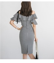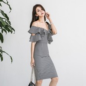 オフショルダー ギンガムチェック タイトワンピース C-OSS0005