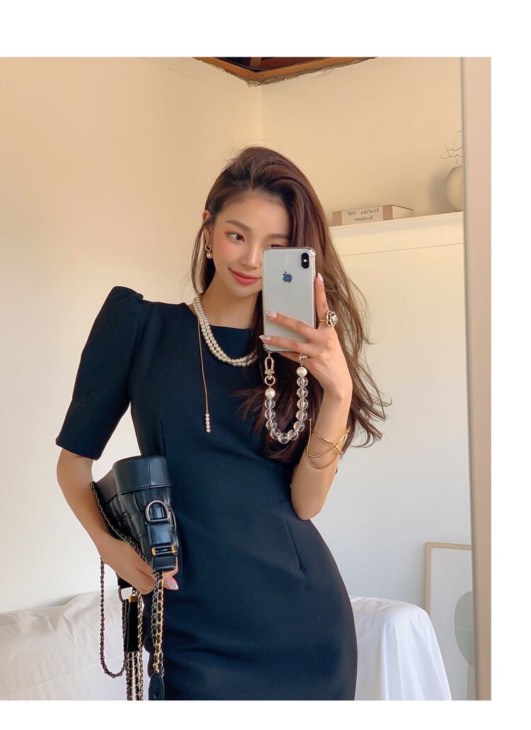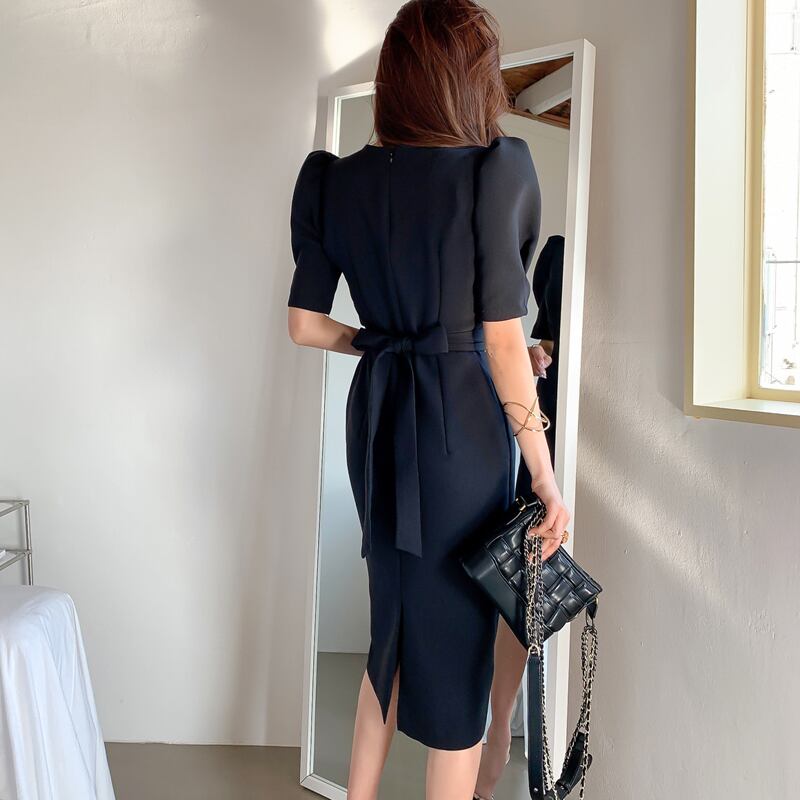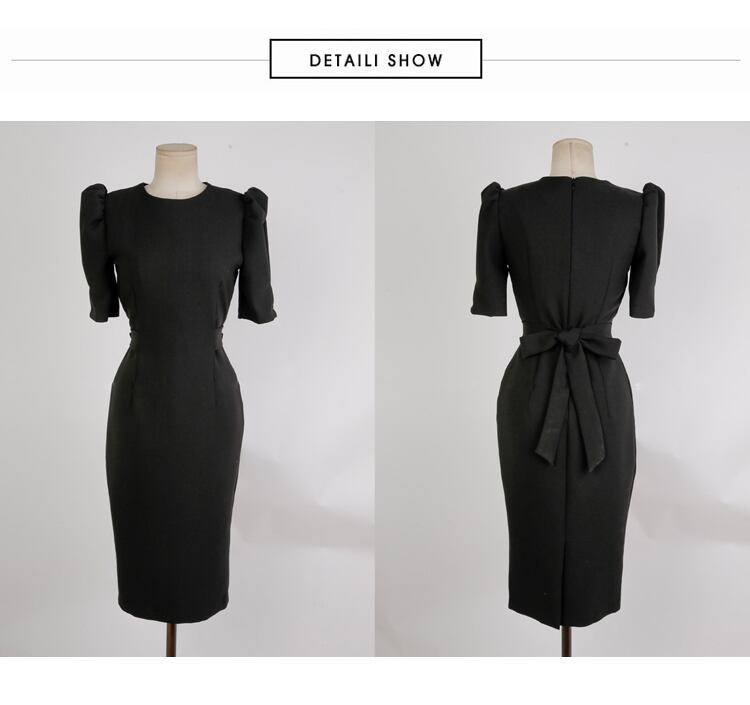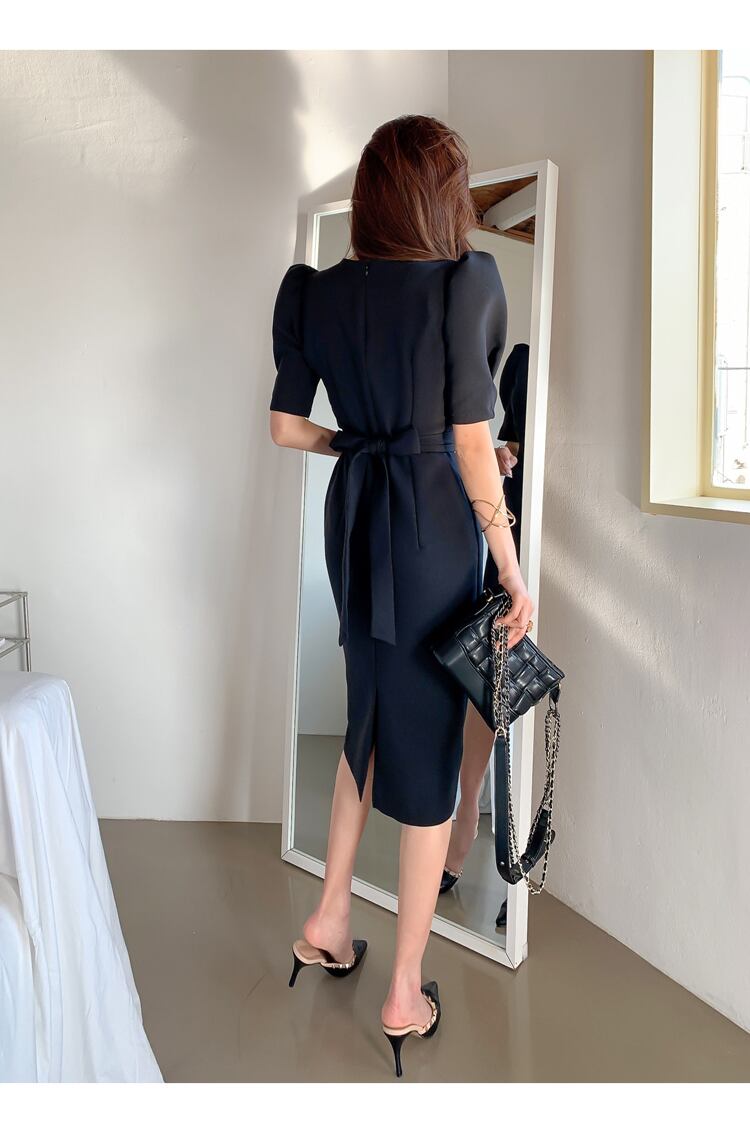 商品名:バックリボン パフスリーブ タイトドレス ワンピース