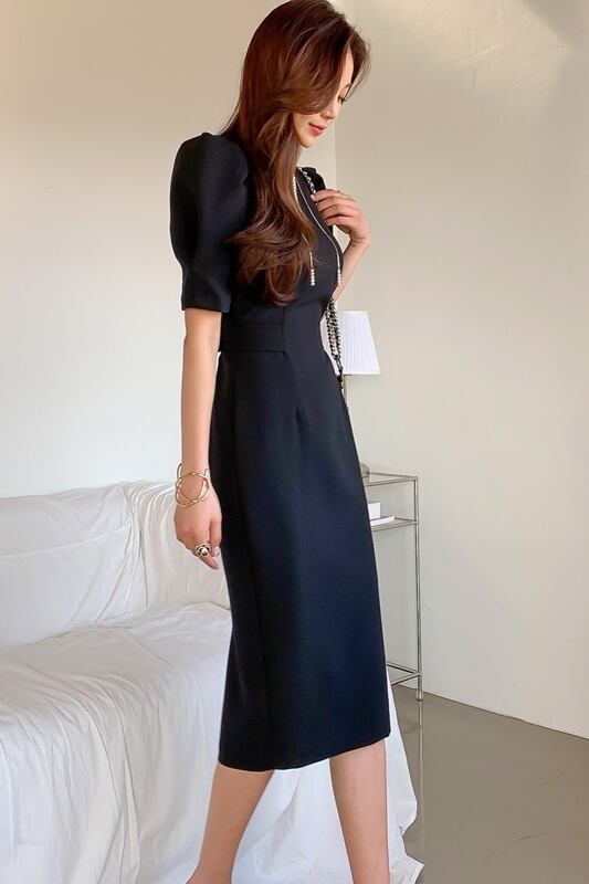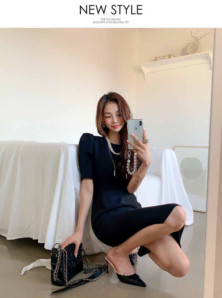 ドレス レディース 春夏 秋冬 春 夏 秋 冬 黒 タイトドレス 半袖 パフスリーブ ドレスワンピース ミディアムドレス ワンピース きれいめ 韓国 タイトワンピース ミモレドレス ダブルボタン ひざ丈ワンピース ワンピースドレス 韓国ファッション OL カジュアル オフィスカジュアル 結婚式 パーティー ブラック お呼ばれ シンプル 10代 20代 30代 40代 C-OSS0051