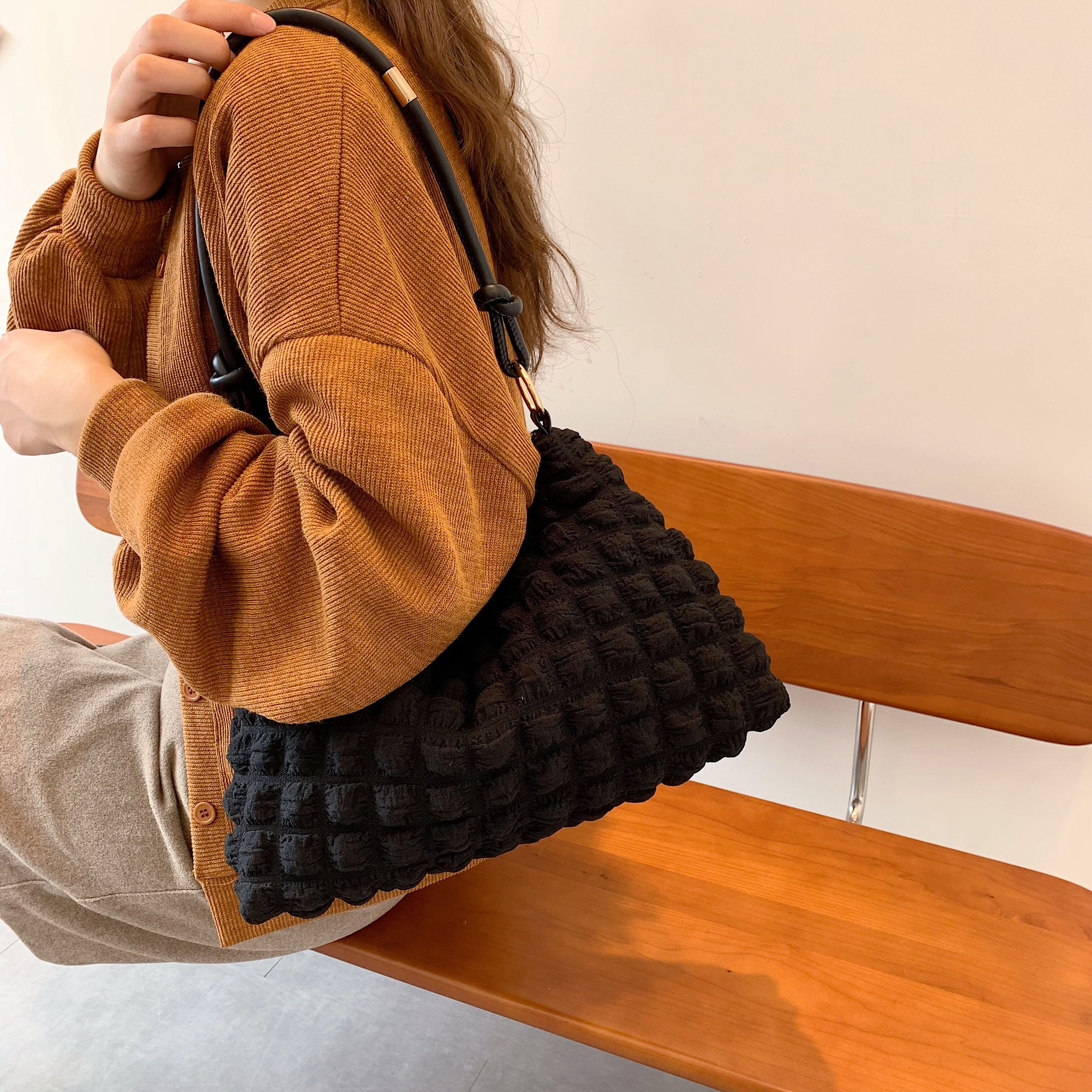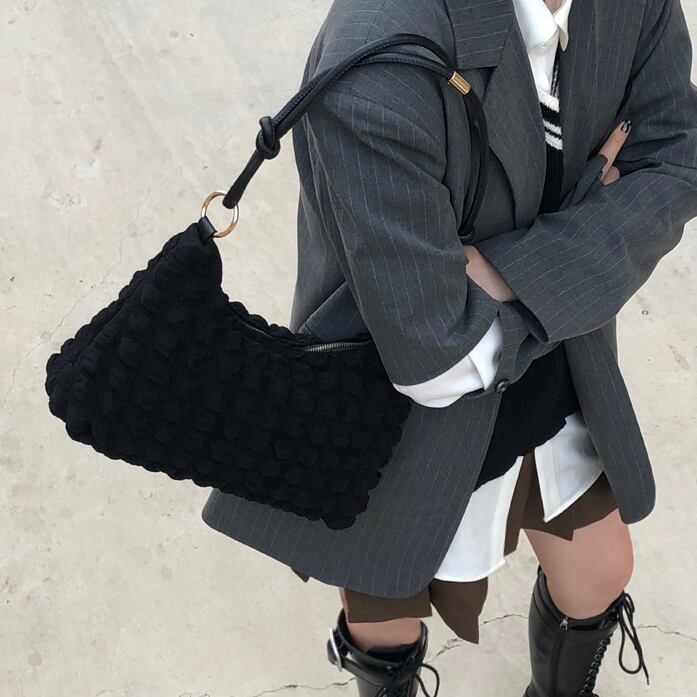 商品名: シンプル ふわふわ ワッフル ワンショルダー ハンド バッグ