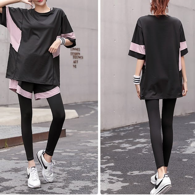 トップス、レギンス、ショートパンツの3点セット!