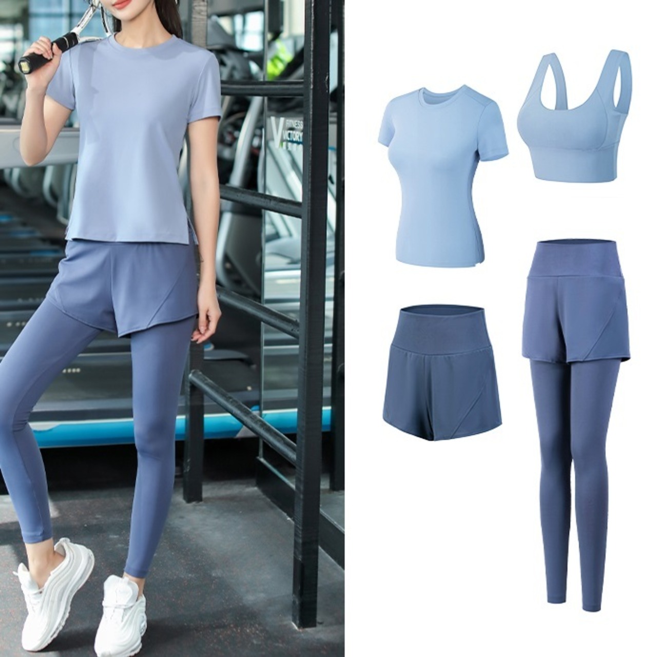 商品名:フィットネスウェア スポーツウェア トップス レギンス 4点セット
