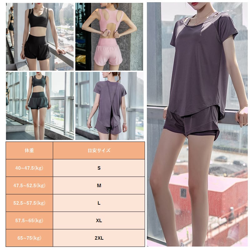 商品名:フィットネスウェア 半袖トップス ショートパンツ スポーツブラ 3点セット