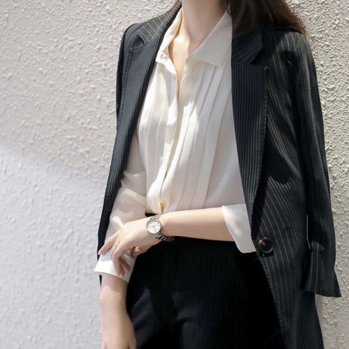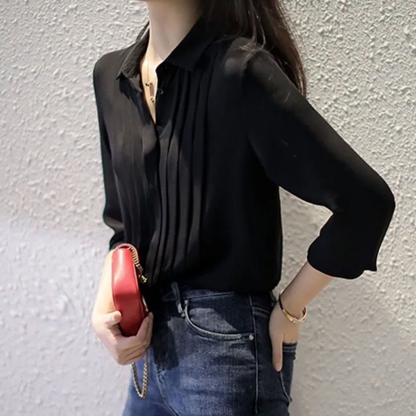 ブラウス レディース 春夏 秋冬 春 夏 秋 冬 白 黒 シャツ トップス 無地ブラウス 長袖 トップス プリーツ チュニック 無地 フロントプリーツ きれいめ プリーツシャツ シフォン プリーツブラウス シンプルシャツ 白シャツ 黒シャツ ホワイト ブラック オフィスカジュアル スーツ 韓国 ゆったり ブラウスシャツ シンプル 長袖シャツ ブラウスシャツ シャツブラウス オフィス カジュアル OL 上品 大人 S M L XL 2XL 20代 30代 40代 50代 C-TSS0061