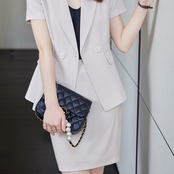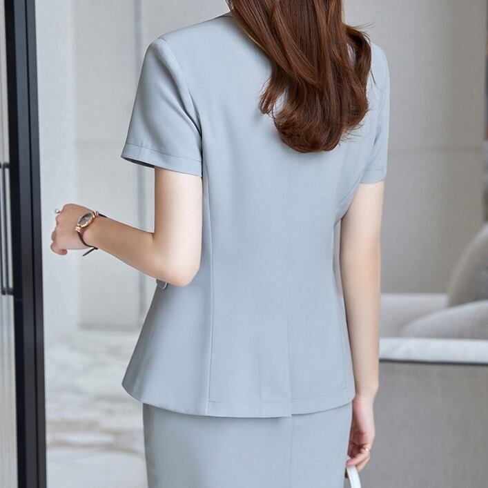 商品名:シンプル 半袖ジャケット&スカート スカートスーツ セットアップ