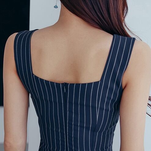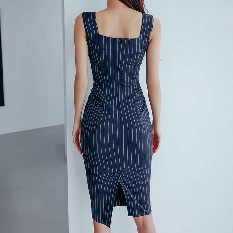 商品名:ノースリーブ ストライプ タイト ミディアムドレス ワンピース