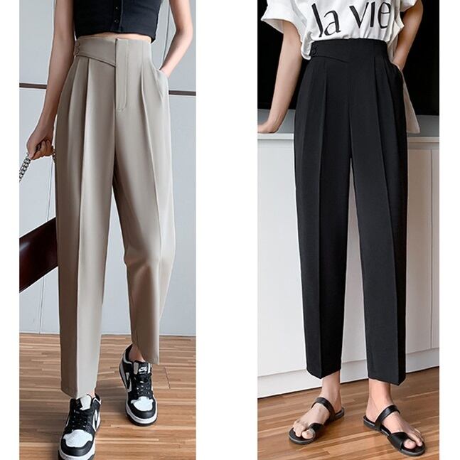 テーパードパンツ レディース 春夏 秋冬 春 夏 秋 冬 黒 ボトムス パンツ クロップドパンツ ハイウエスト シンプル クロップド丈 9分丈 7分丈 きれいめ 大人 ブラック ベージュグレー 韓国ファッション OL カジュアル オフィスカジュアル ウエストゴム オフィス OL XS、S、M、L、XL、2XL ズボン スーツ C-PSS1032