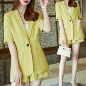商品名:シンプル 半袖ジャケット&ショートパンツ パンツスーツ セットアップ
