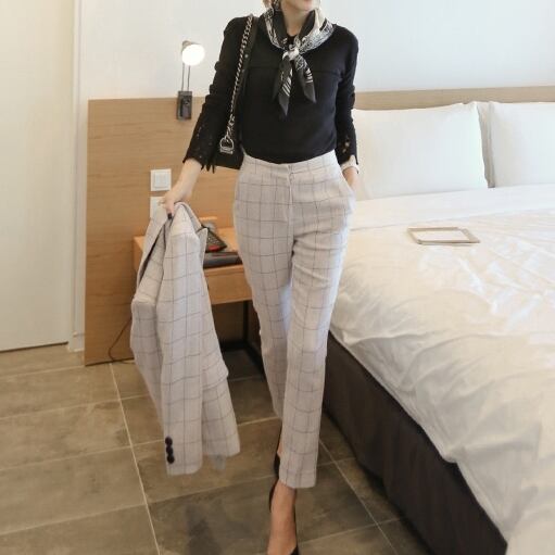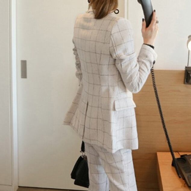 パンツスーツ レディース 春夏 秋冬 春 夏 秋 冬 スーツ チェック柄 上下セット 2点セット ジャケット パンツ セットアップ チェック柄スーツ タイト アンクル丈 パンツスーツ オフィス クロップド丈 OL オフィスカジュアル 結婚式 パーティー お呼ばれ ベージュ 10代 20代 30代 40代 C-WAW1018