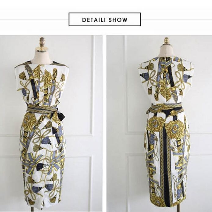 商品名:プリントデザイン ノースリーブ タイトワンピース