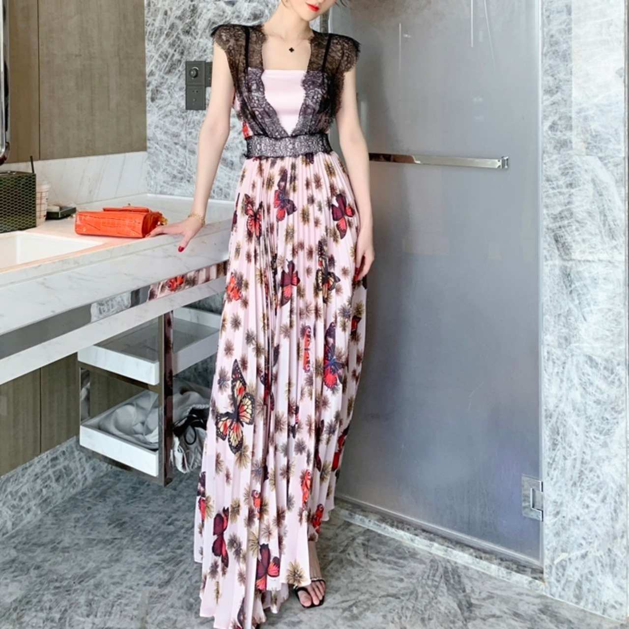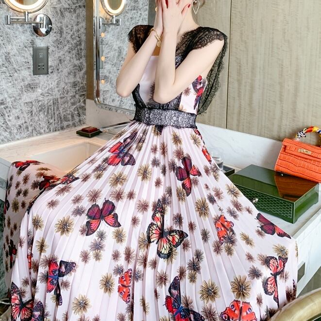 ワンピース レディース 春夏 秋冬 春 夏 秋 冬 花柄 蝶 ノースリーブ レース ドレス 花柄ワンピース マキシワンピース ワンピースドレス フラワー ロング丈ワンピ ドレスワンピース プリーツワンピース ロングワンピース ノースリーブ エレガント ピンク お呼ばれ 結婚式 パーティードレス ノースリーブワンピース 大人 カジュアル 10代 20代 30代 40代 C-OSS0068