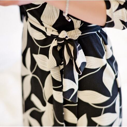 ユニークなプリントのカシュクールワンピース。