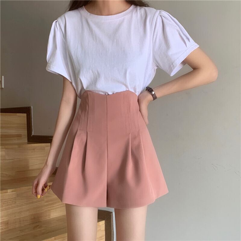 ショートパンツ レディース シンプル ハイウエスト パンツ ピンク ライトパープル ホワイト キュロット ボトムス グレー ブラック 黒 白 春 夏 春夏 キュロットパンツ ショート丈 ミニ丈 ショート丈パンツ C-PSS0001
