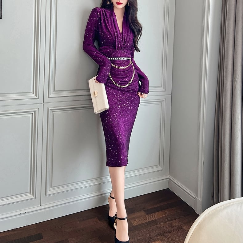 ドレス レディース 春夏 秋冬 春 夏 秋 冬 黒 タイトドレス ワンピース ラメ ミモレ丈ドレス きらきら ラメドレス ひざ丈 Vネック ドレスワンピース ミディアムドレス タイトワンピース ショートドレス ナイトドレス ロングドレス ヒザ下ワンピース キャバドレス キャバ嬢 韓国 ワンピドレス ブラック パープル ワンピースドレス OL 結婚式 パーティー お呼ばれ パーティードレス パーティドレス S M L 10代 20代 30代 40代 C-OSS0091