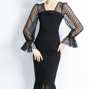 ワンピース レディース 春夏 秋冬 春 夏 秋 冬 黒 ロングワンピース ドレス 長袖 ロング ドレスワンピース ミディアムドレス ドレス レースワンピース ひざ丈 フリル ミモレドレス ひざ下ワンピース ミモレワンピ シースルー ベルスリーブ ラッパ袖 キャバドレス キャバ嬢 ナイトドレス きれいめ 韓国 ワンピドレス ブラック OL オフィスカジュアル 結婚式 パーティー お呼ばれ S M L XL 10代 20代 30代 40代 C-OSS0086