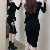 ワンピース ドレス レディース 春夏 秋冬 春 夏 秋 冬 黒 タイトワンピース タイトドレス 長袖 ワンピース ドレスワンピース ミディアムドレス ワンピース きれいめ 韓国 タイトワンピース ミモレドレス ひざ丈ワンピース ラメ シンプル オープンショルダー カットショルダー ワンピースドレス 韓国ファッション OL カジュアル オフィスカジュアル 結婚式 パーティー ブラック お呼ばれ シンプル 10代 20代 30代 40代 C-OSS0076